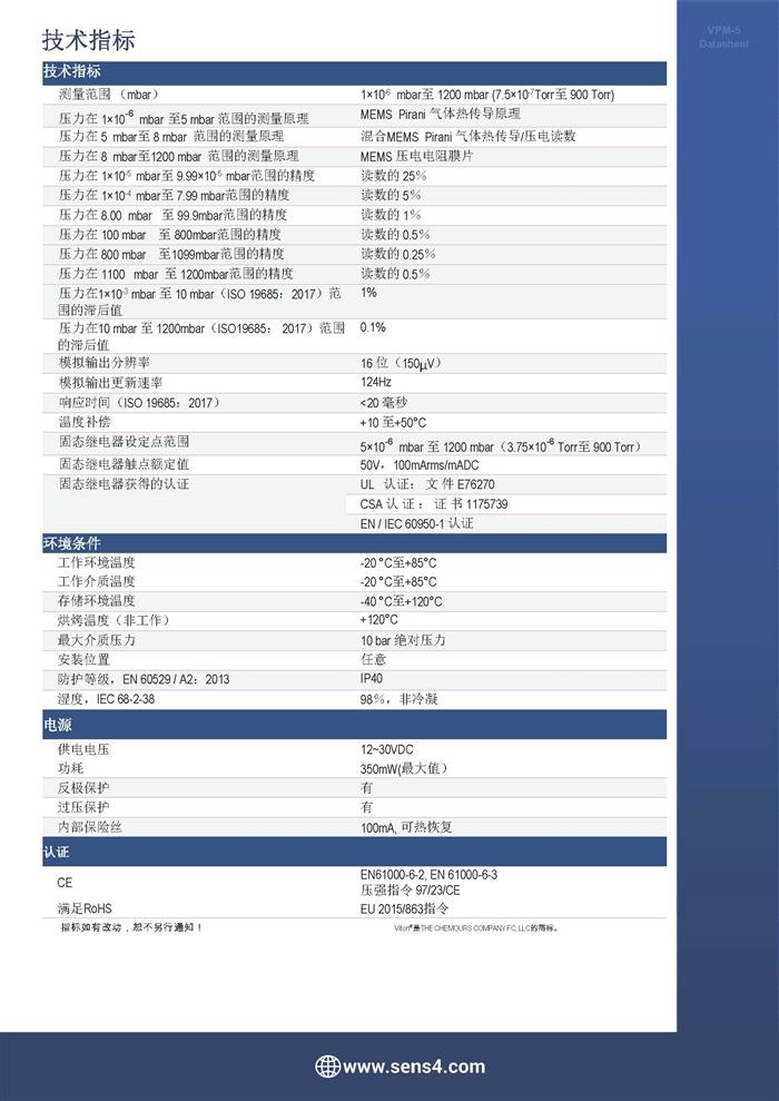 more>>VPM-5 SmartPirani™ MEMS复合真空压力变送器